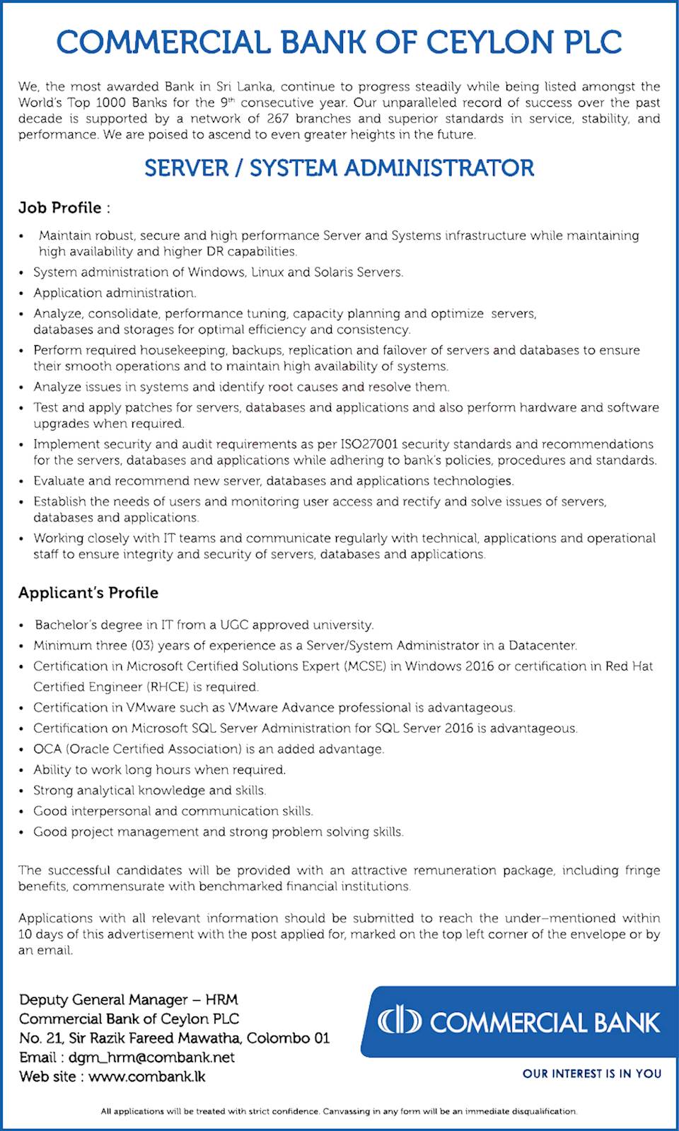 Server / System Administrator Vacancies Full-time job vacancies Closing Date 2019-12-31
