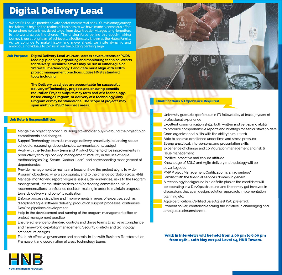 Job Title: Digital Delivery Lead – Hatton National Bank PLC