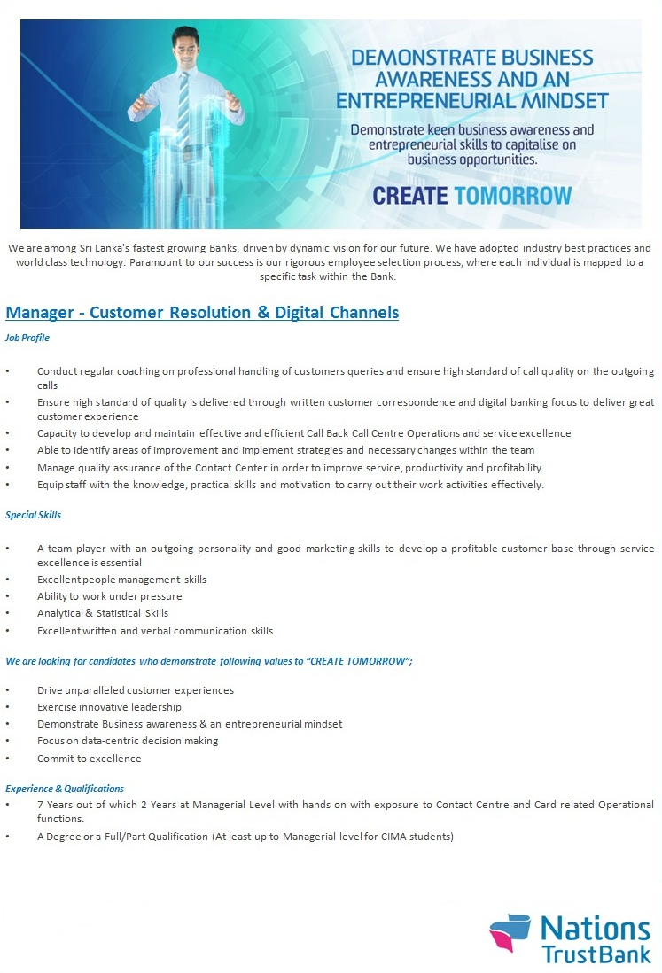 - 7 Years out of which 2 Years at Managerial Level with hands-on with exposure to Contact Centre and Card-related Operational functions.