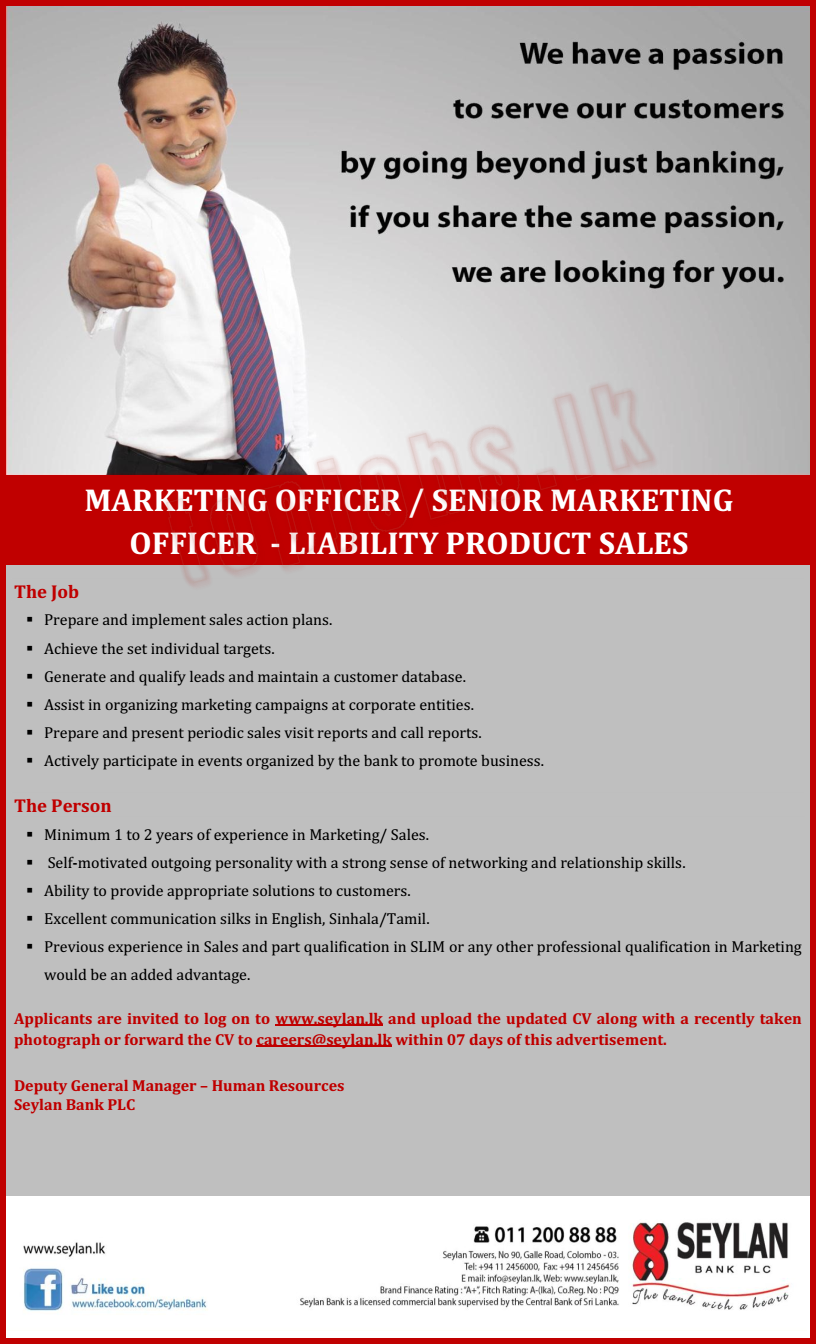 Marketing Officer / Senior Marketing Officer – Liability Product Sales