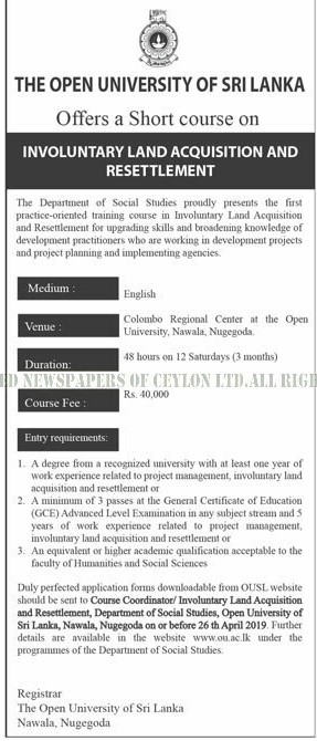 A Short Course on Involuntary Land Acquisition & Resettlement – The Open University of Sri Lanka
