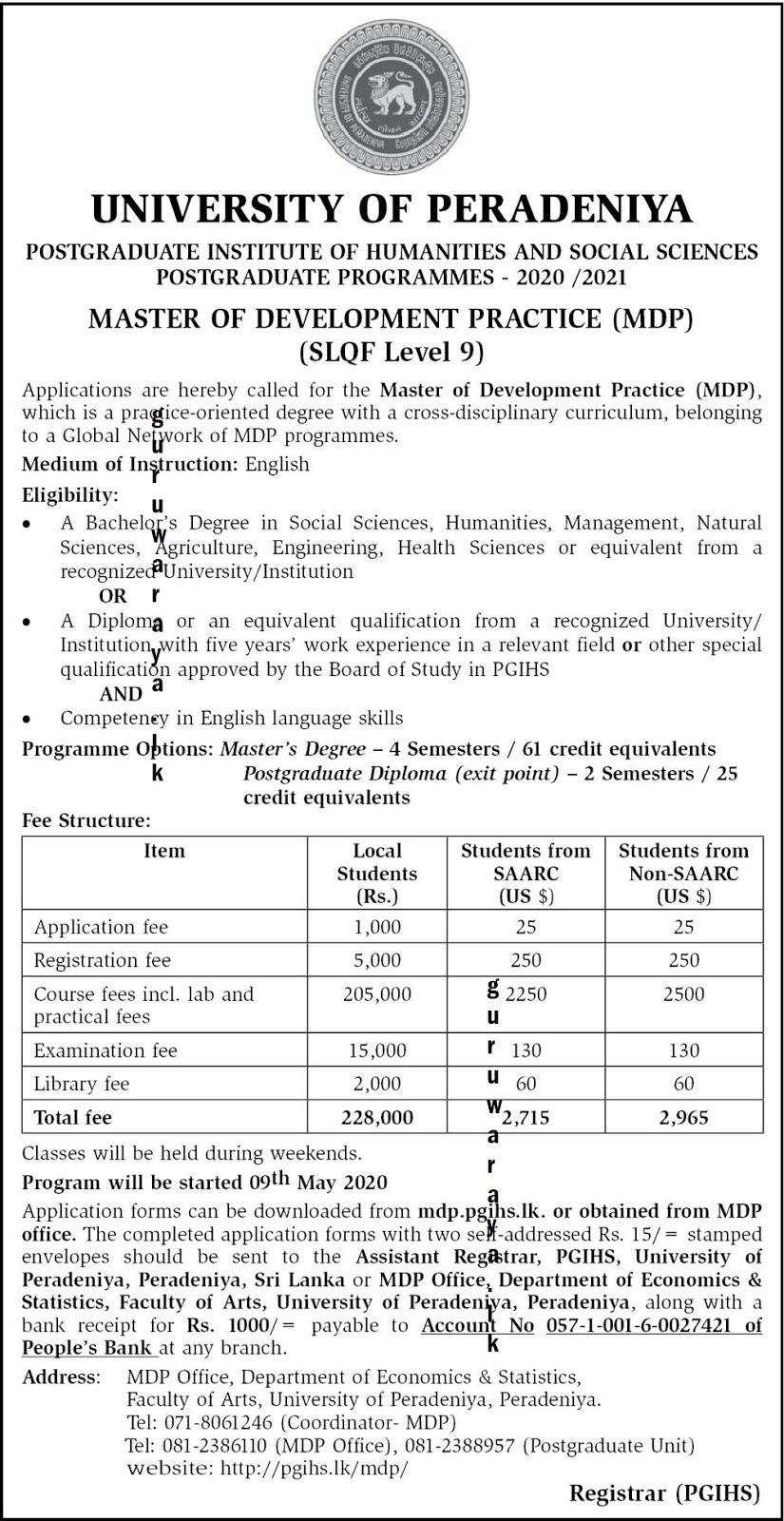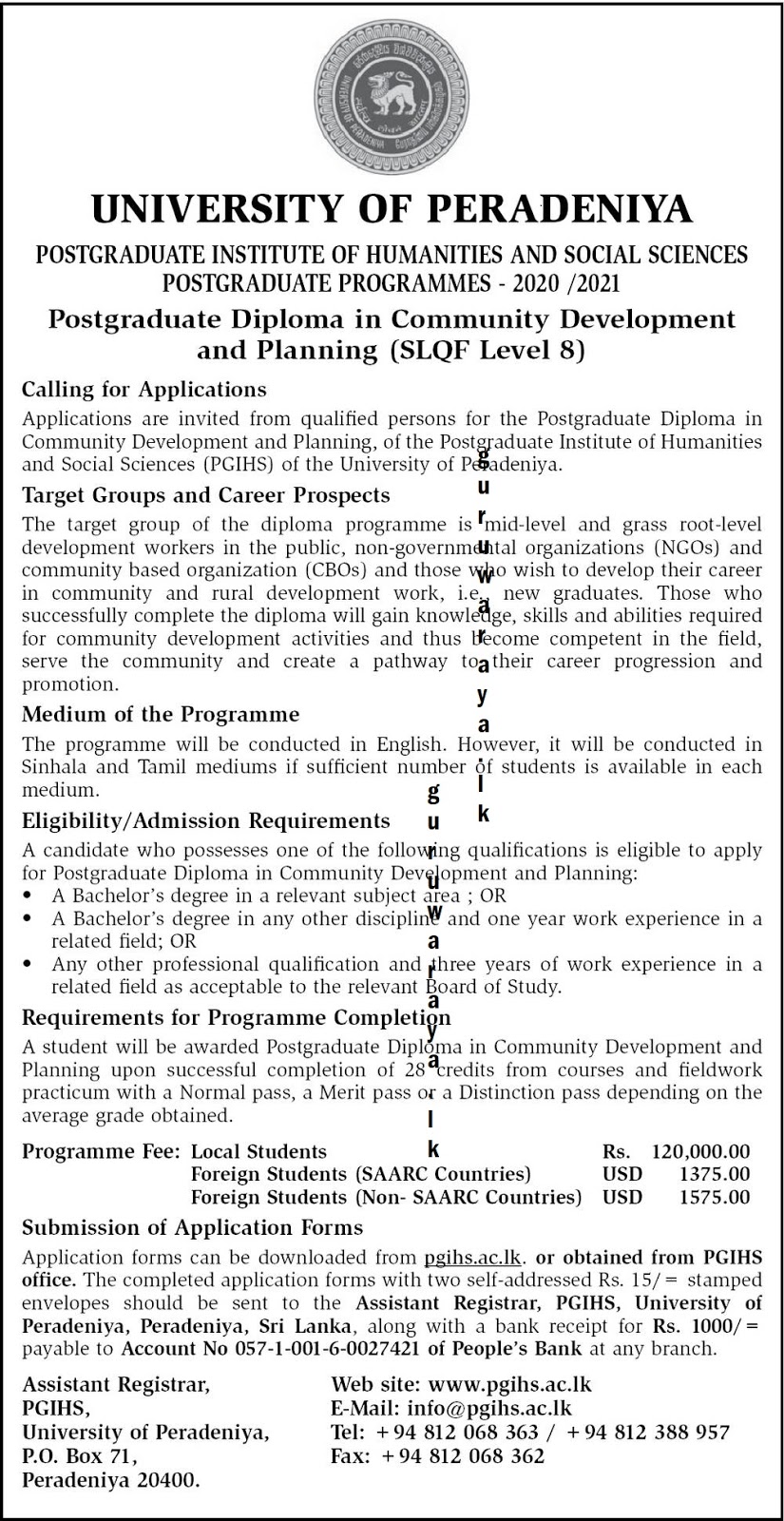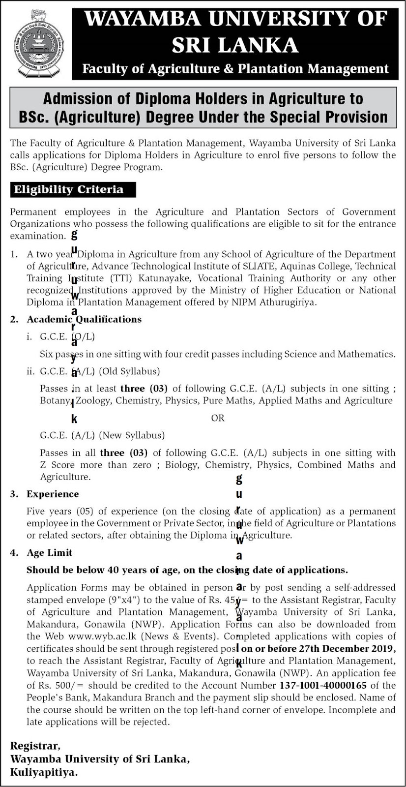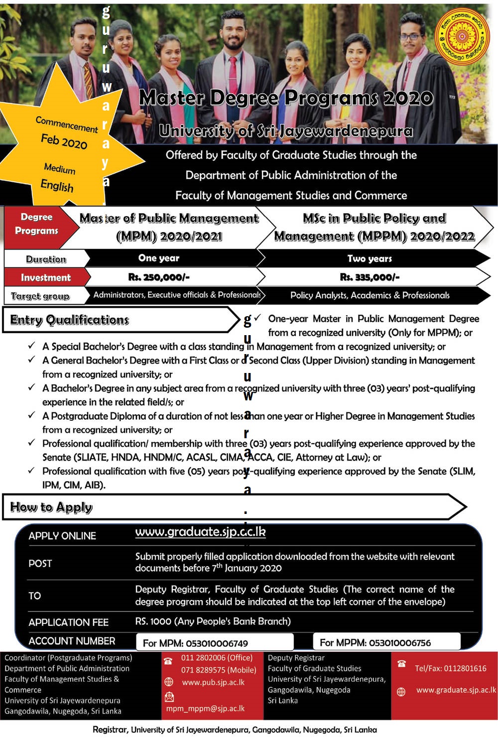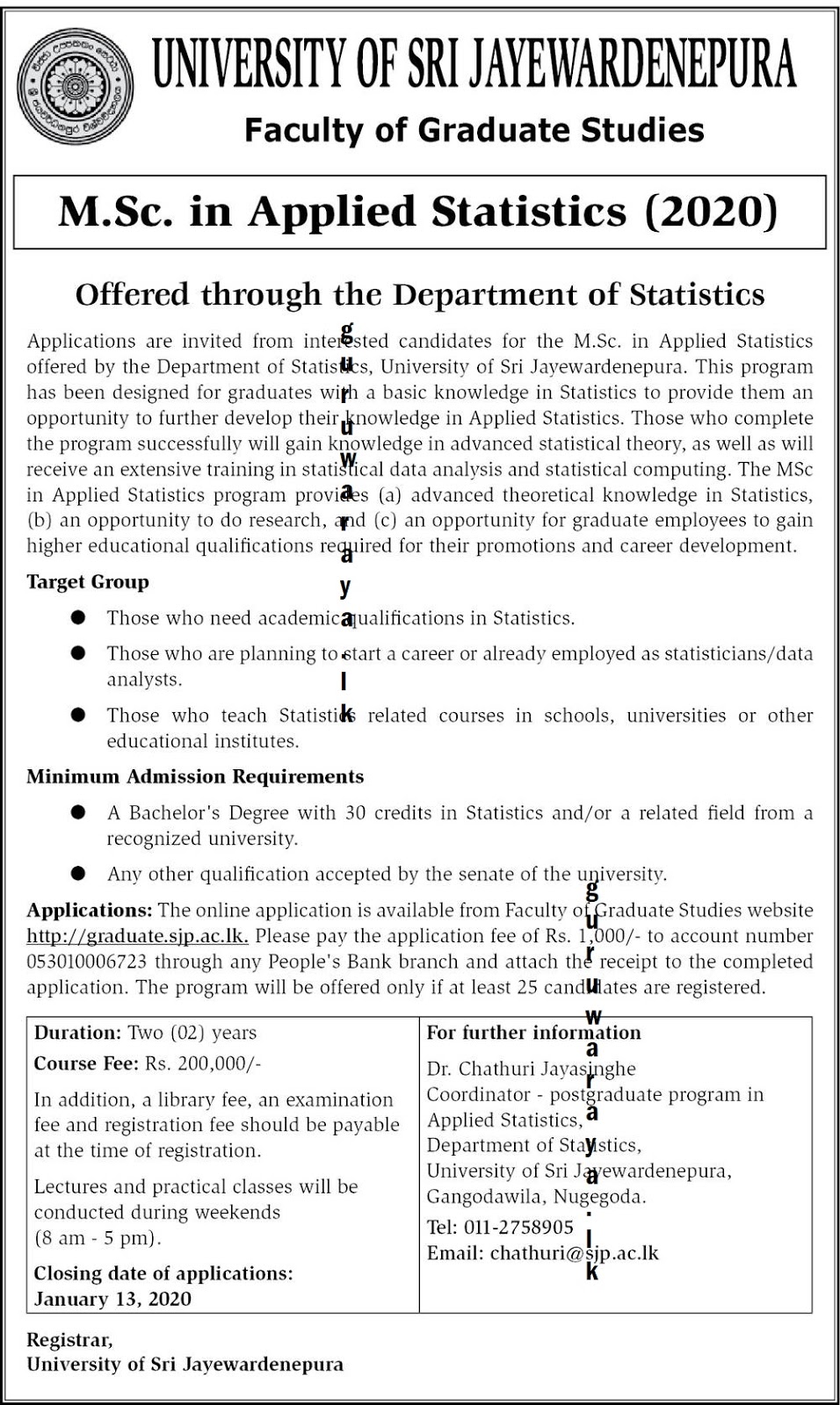 Here we have listed the courses from government universities which are published on Sunday Observer on 15.12.2019. Refer he paper or the advertises given at the bottom for furher Details.