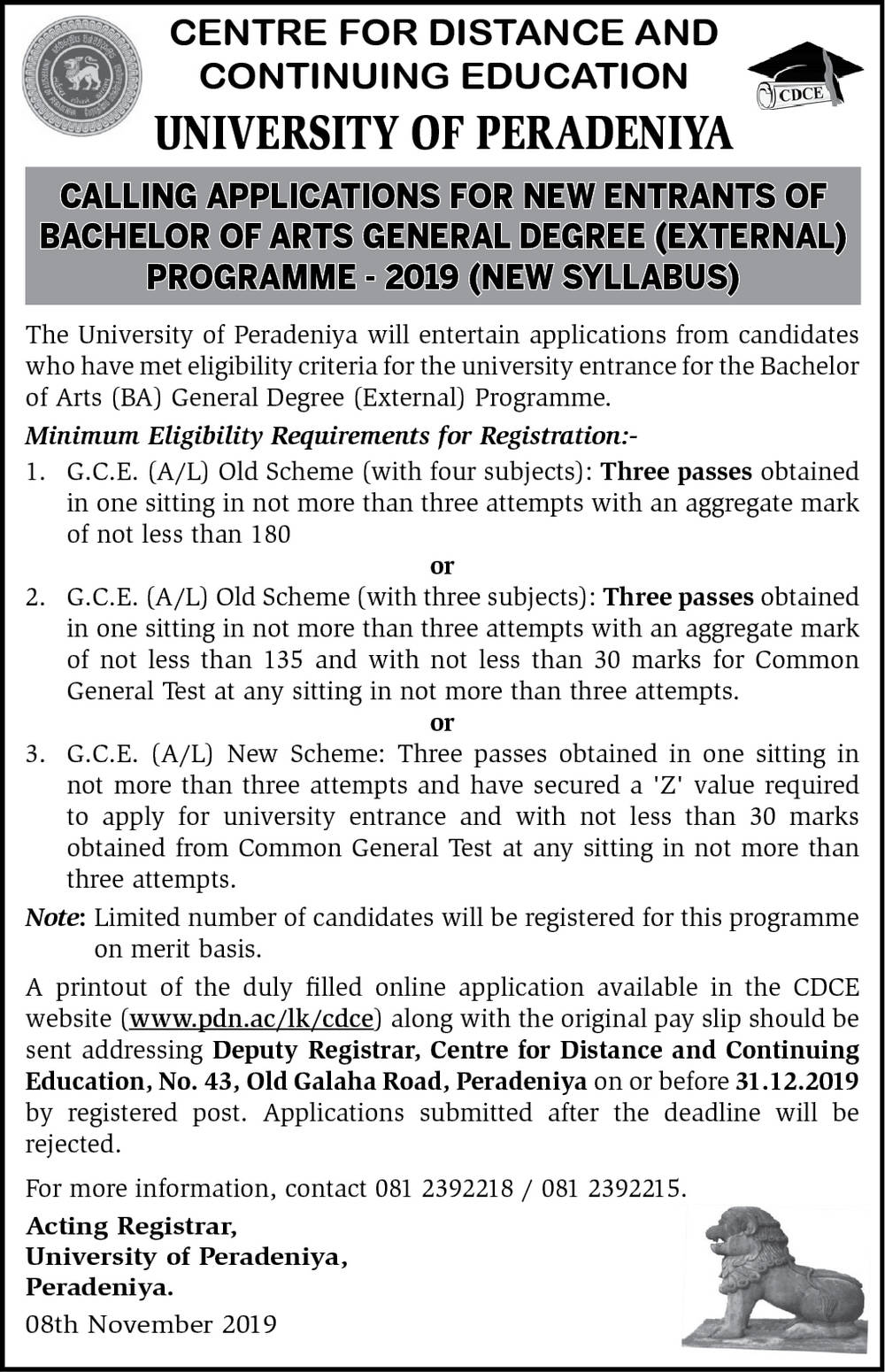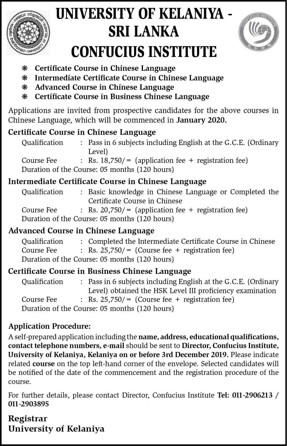 Here we have listed the courses from government universities which are published on Snday Observer paper on 17.11.2019.