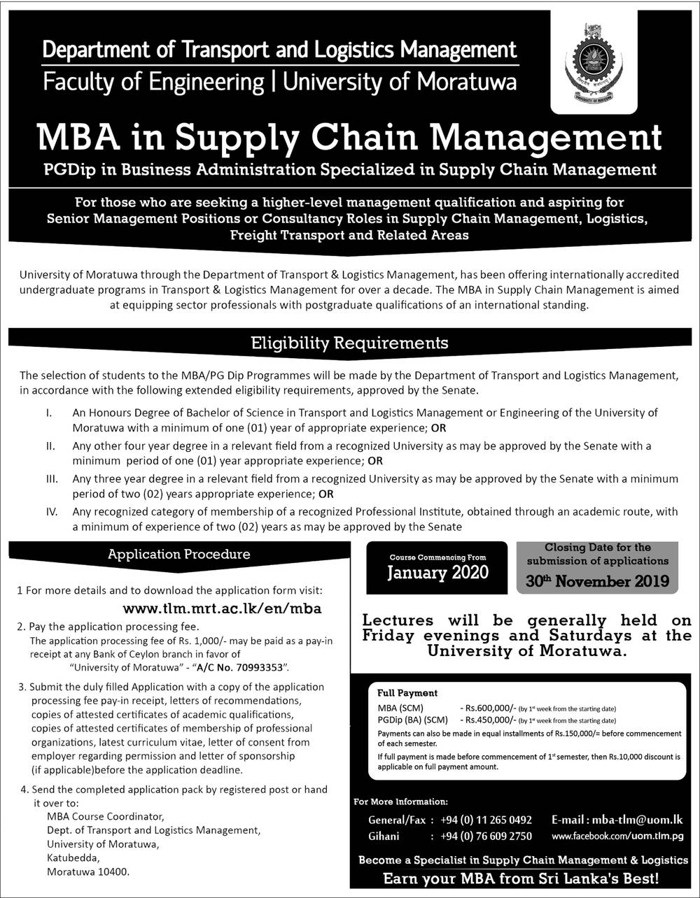 MBA in Supply Chain Management – Department of Transport & Logistics Management – University of Moratuwa