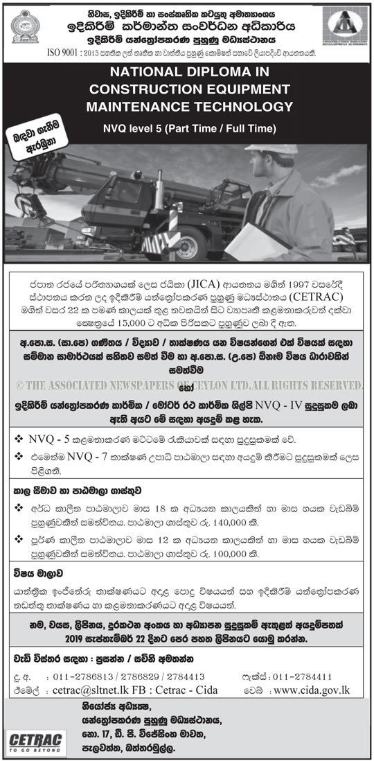 National Diploma in Construction Equipment Maintenance Technology – Construction Industry Development Authority