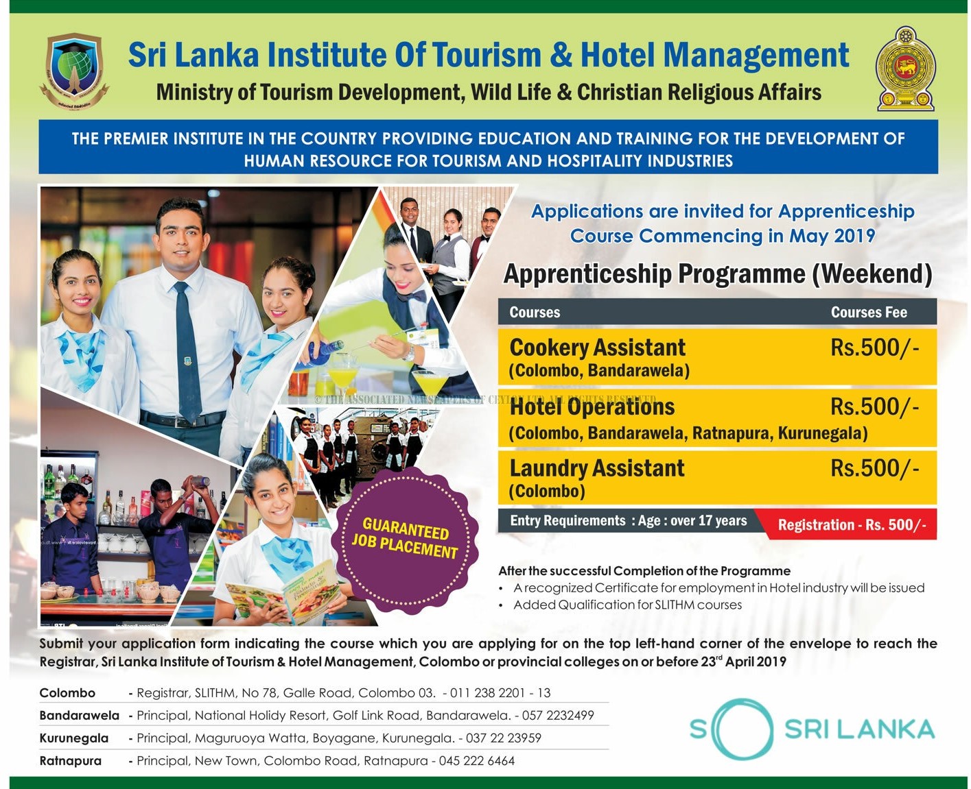 Cookery Assistant, Hotel Operations, Laundry Assistant – Sri Lanka Institute of Tourism & Hotel Management