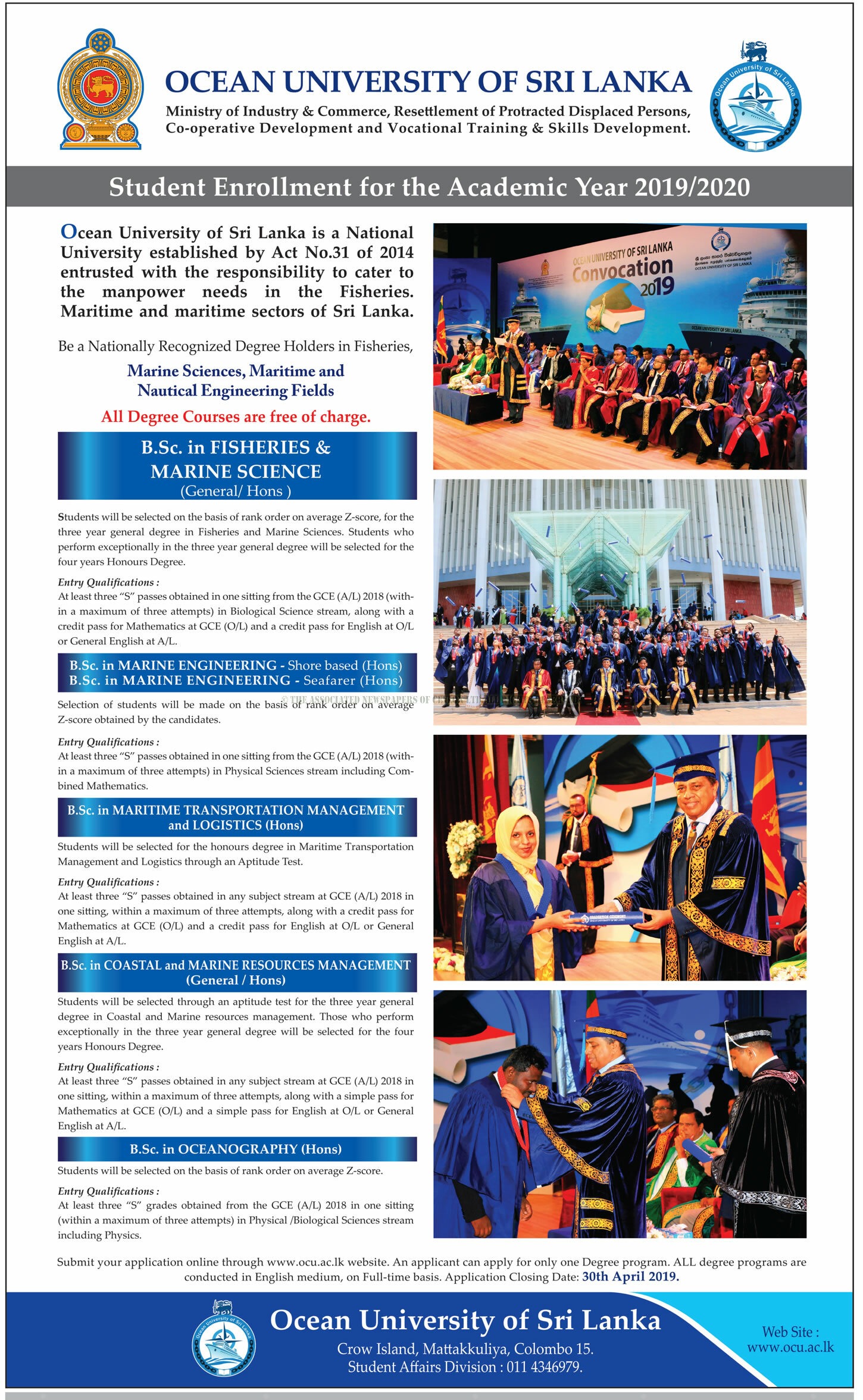Student Enrollment for the Academic Year 2019/2020 – Ocean University of Sri Lanka
