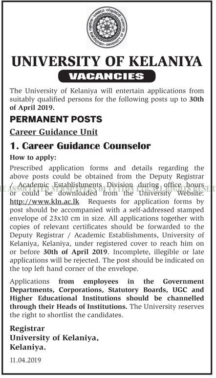 Sri Lanka Government University of Kelaniya Job Vacancies