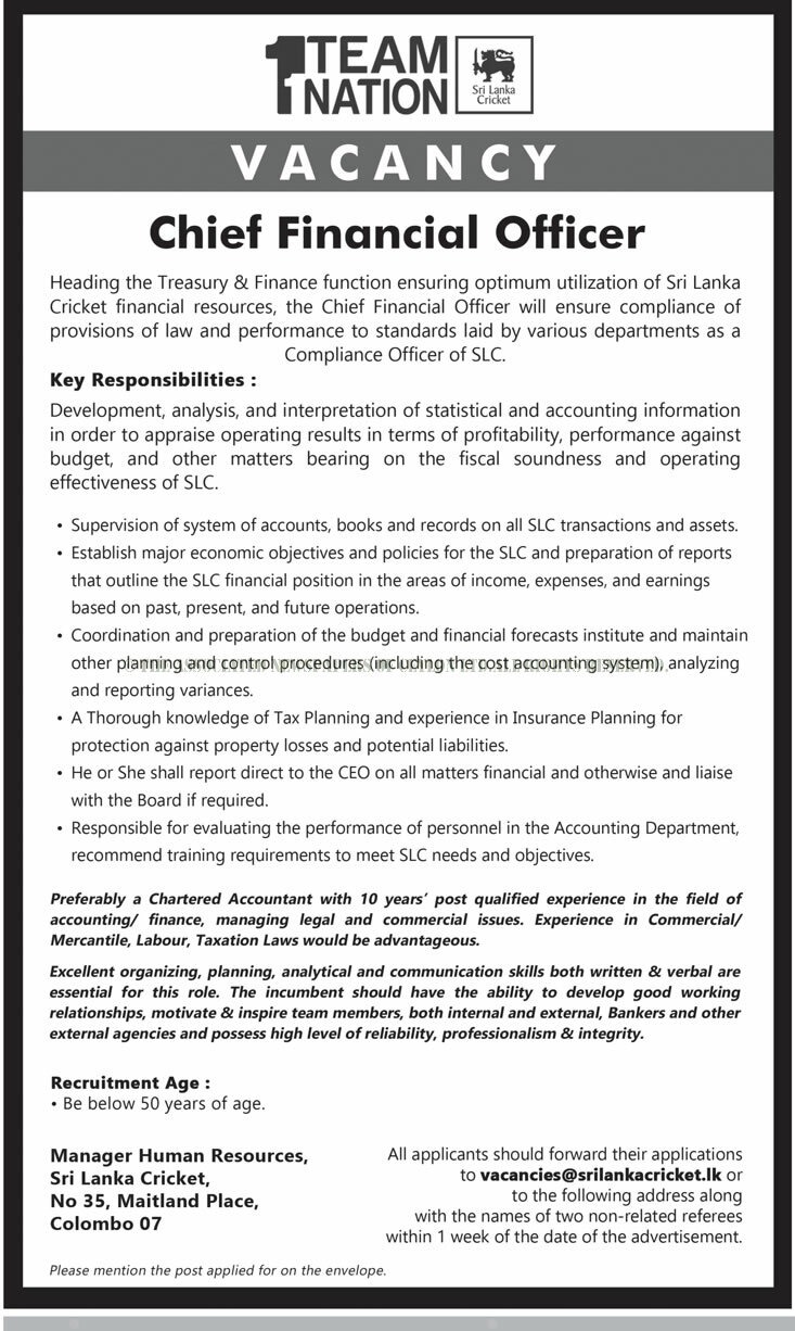 Chief Financial Officer – Sri Lanka Cricket