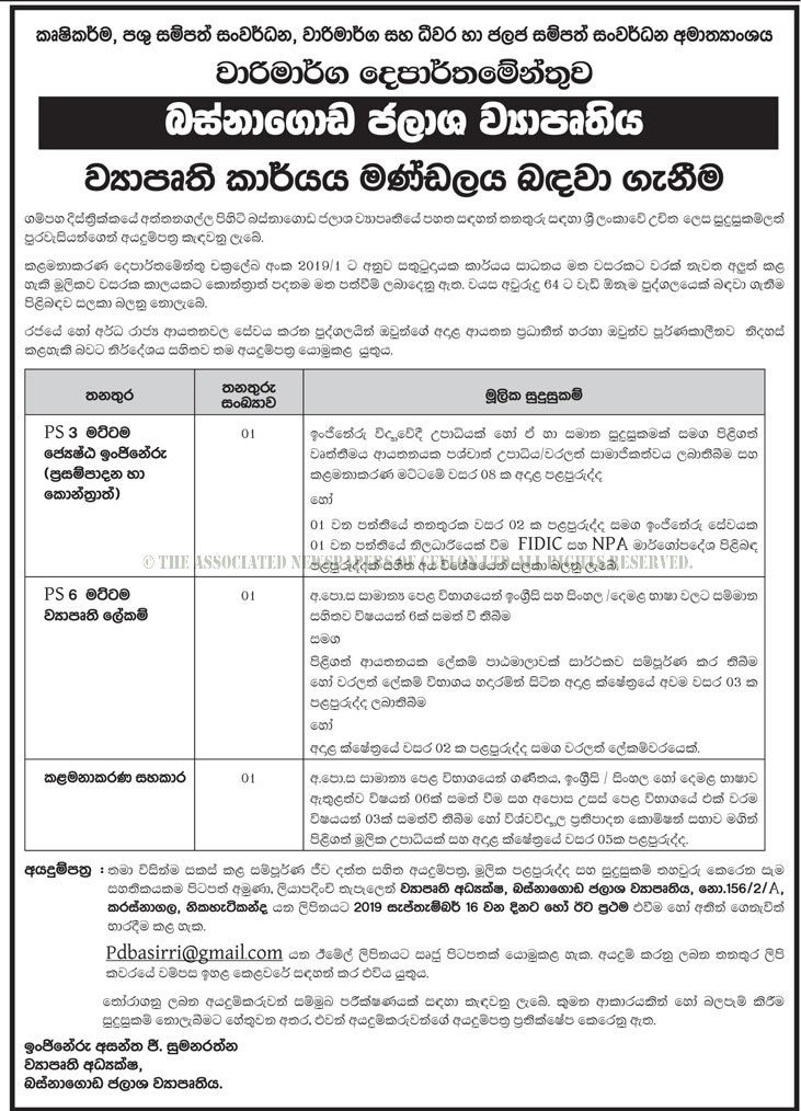 Management Assistant, Senior Engineer, Project Secretary – Department of Irrigation