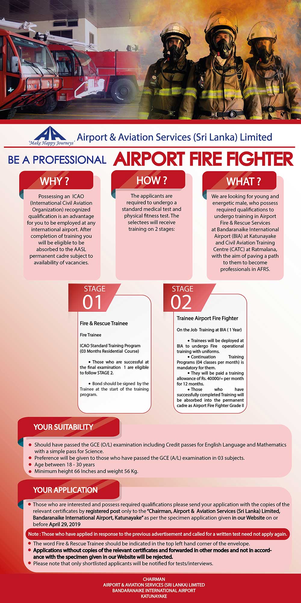 Fire & Rescue Trainee Government Job Vacancies in Airport & Aviation Services (Sri Lanka) Limited