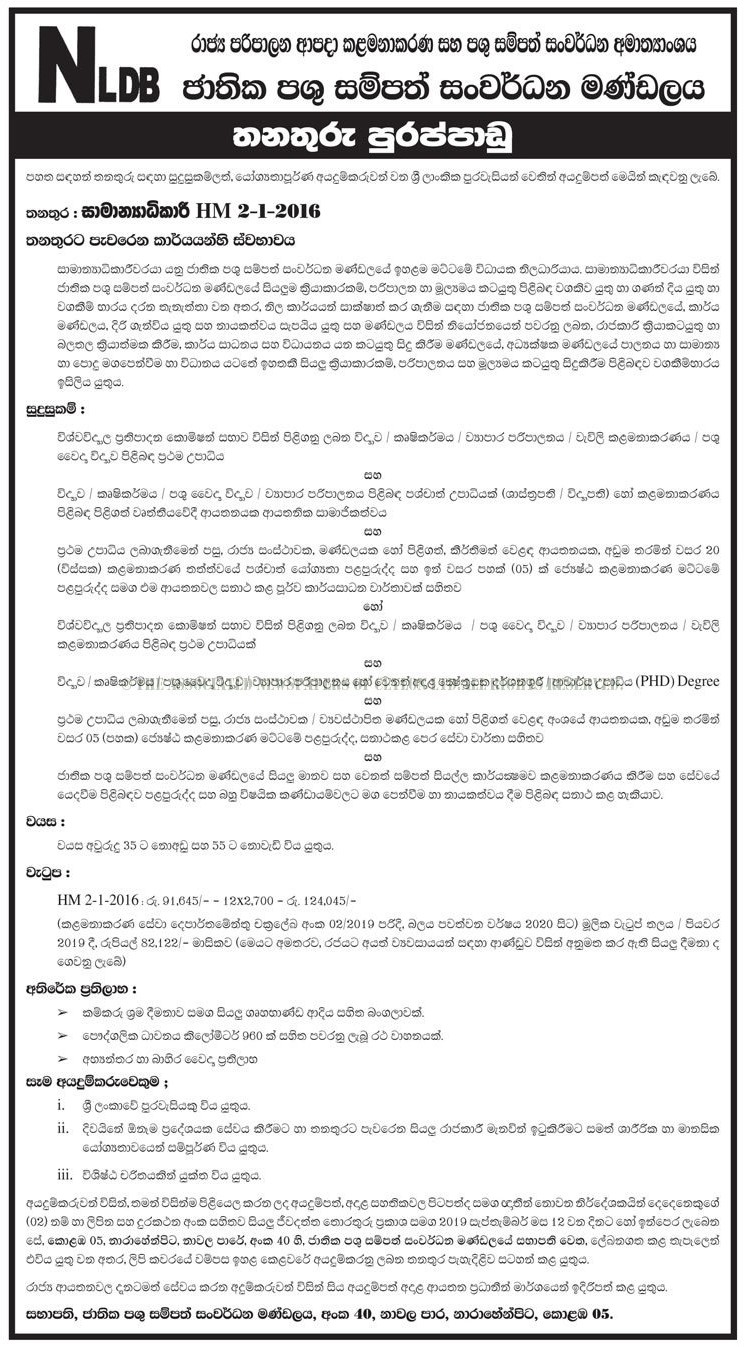 Full-Time National Livestock Development Board Job Vacancies in Sri Lanka