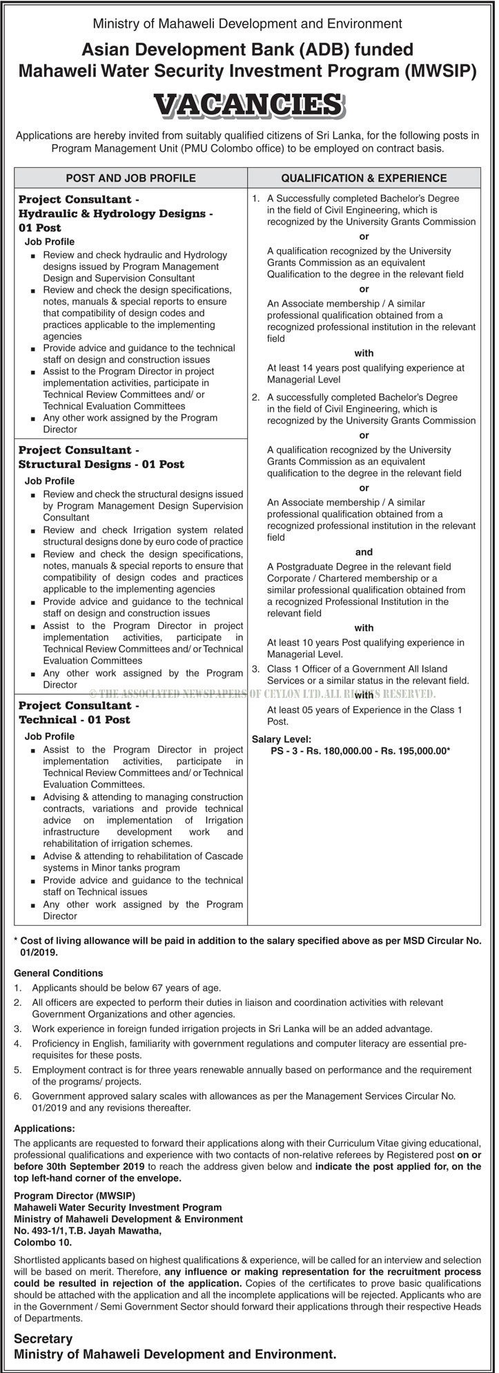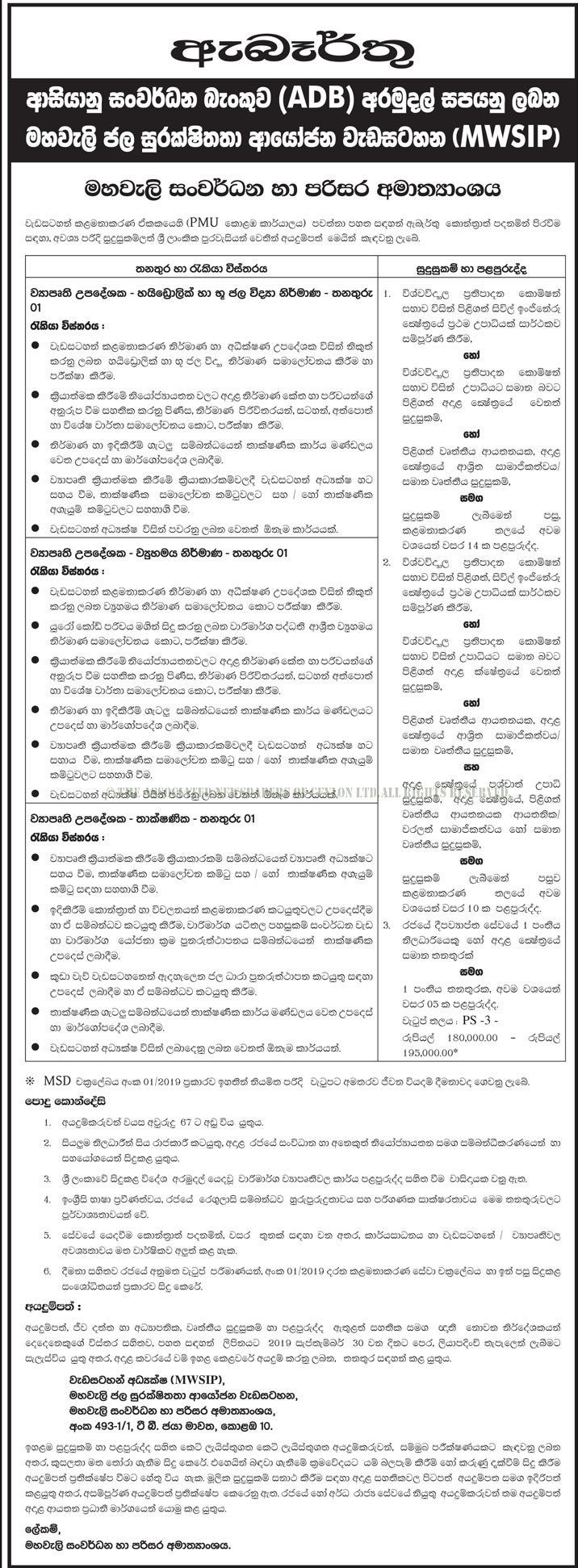 Full-Time Ministry of Mahaweli Development & Environment Job Vacancies in Sri Lanka