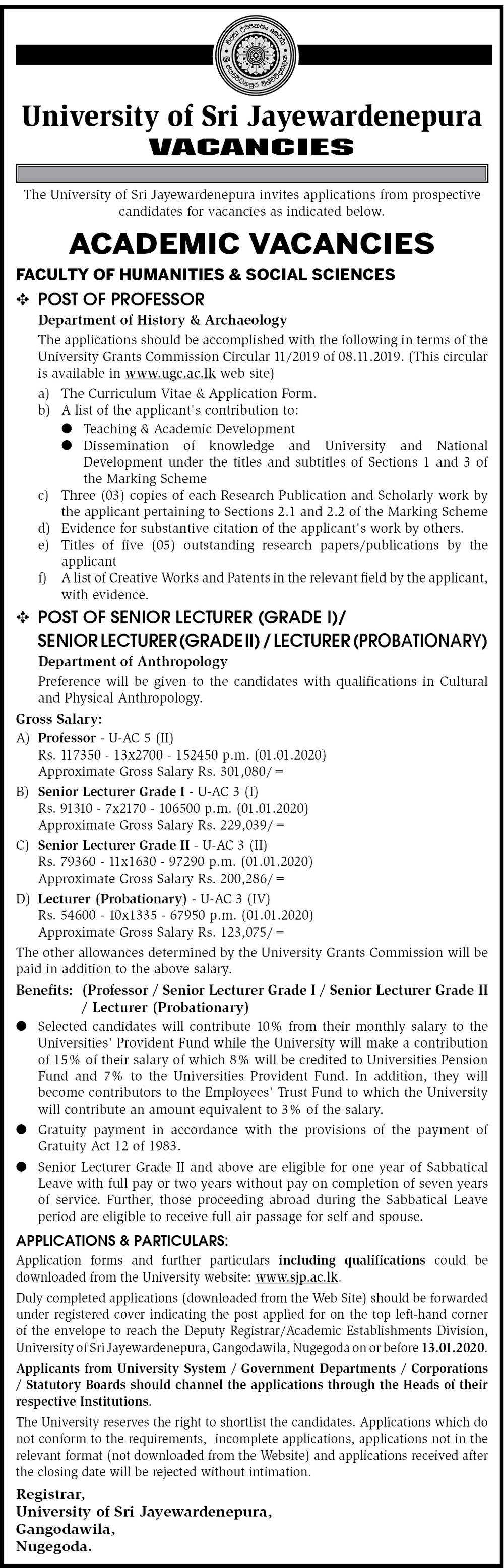 Professor, Senior Lecturer, Lecturer – University of Sri Jayewardenepura