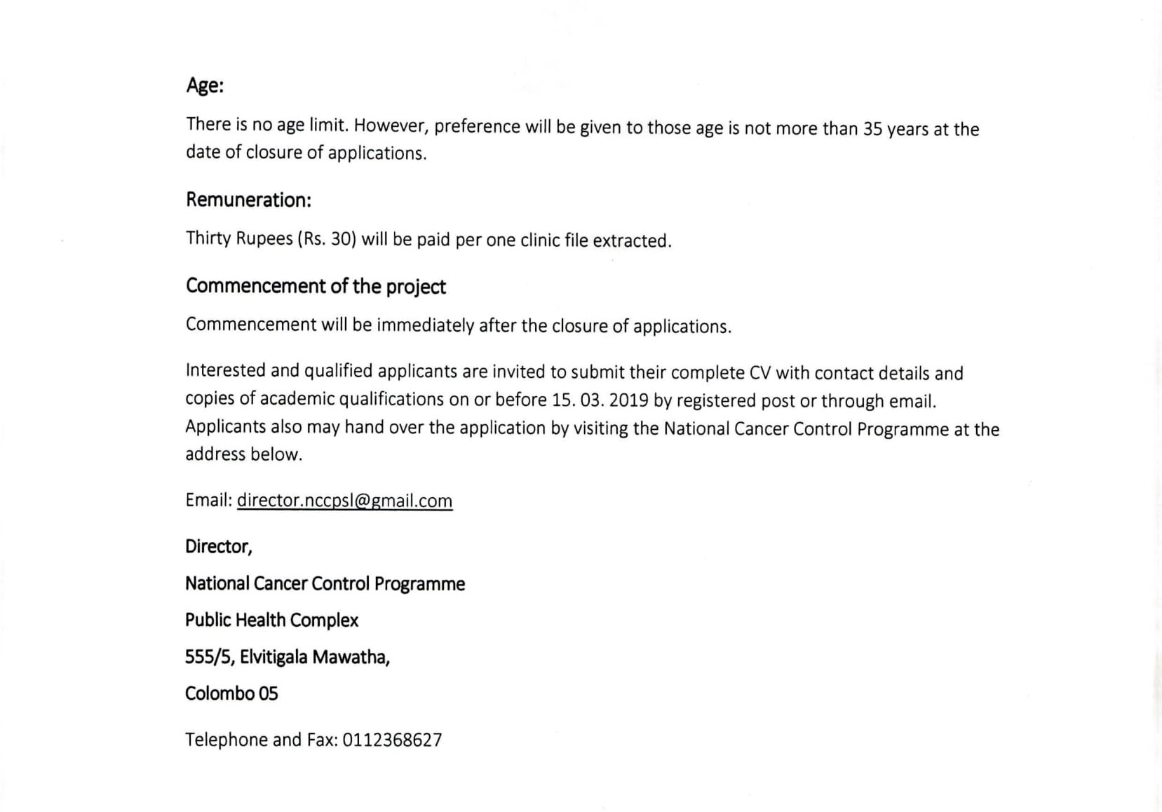 Research Assistant – Ministry of Health, Nutrition & Indigenous Medicine