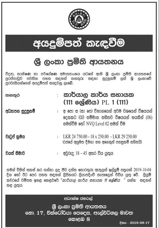 Job Title: Office Assistant – Sri Lanka Standards Institution