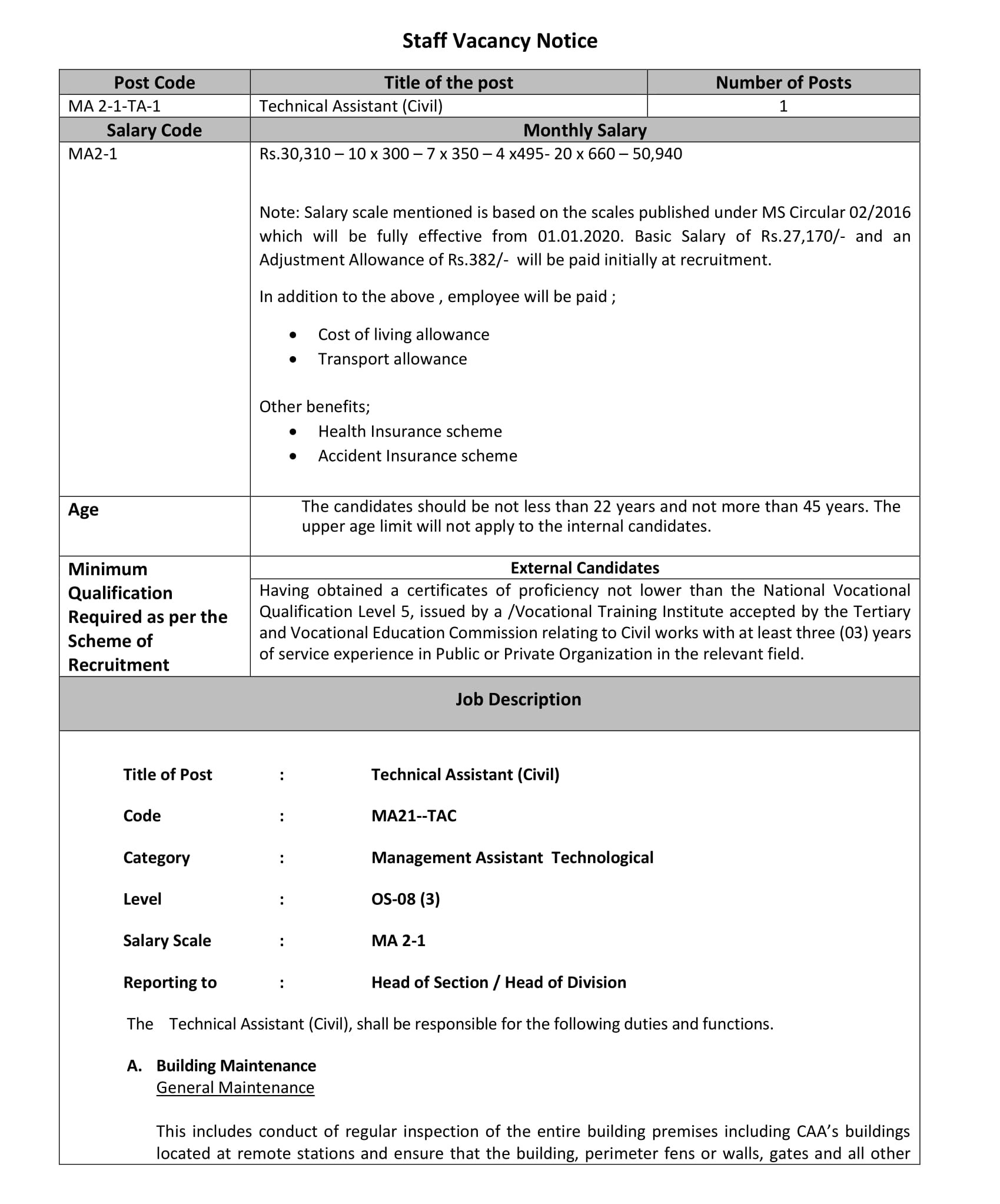 Technical Assistant (Civil) – Civil Aviation Authority