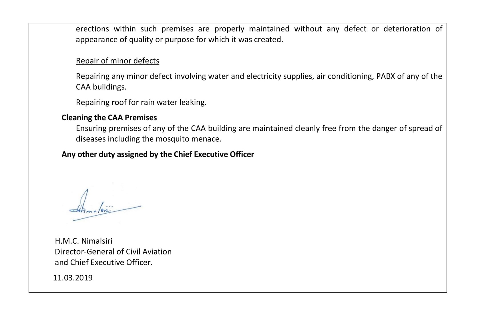 Source: www.caa.lk (2019.03.14)