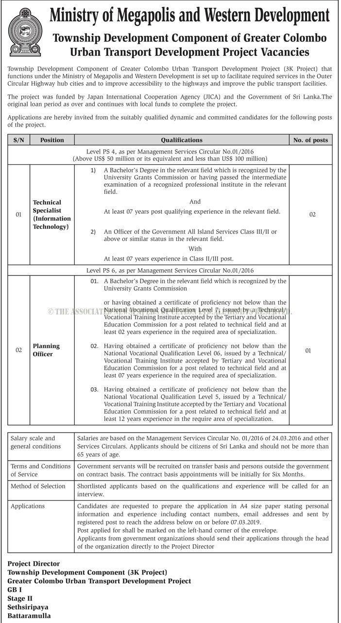 Technical Specialist, Planning Officer – Ministry of Megapolis & Western Development