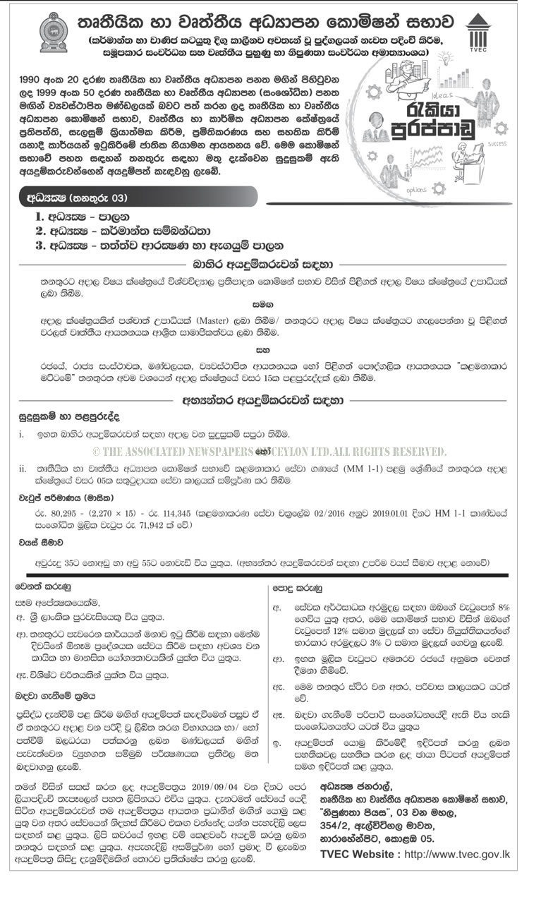 Full-Time Tertiary & Vocational Education Commission Job Vacancies in Sri Lanka