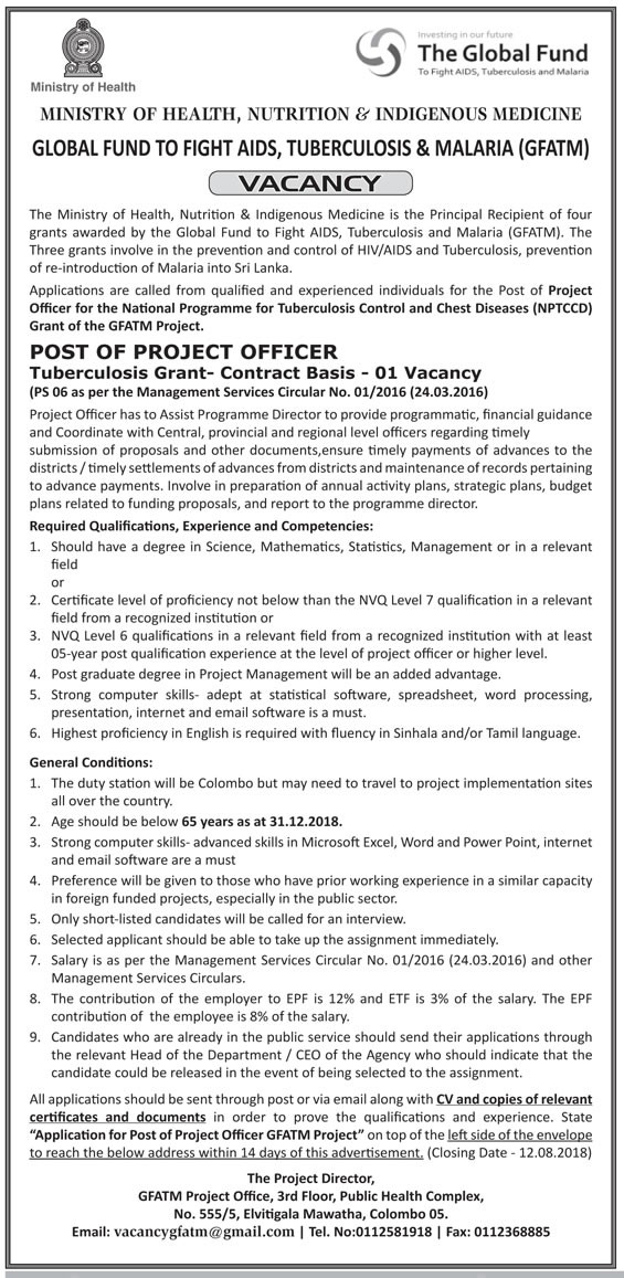 Vacancies in Ministry of HealthJuly 30, 2018 Vacancies in Ministry of HealthVacancies for the Post of Project Officer Application Closing Date: 12-08-2018 Source: Sunday Observer (29-07-2018Share this: Click to share on Facebook (Opens in new window) Facebook Click to share on WhatsApp (Opens in new window) WhatsApp Click to share on Telegram (Opens in new window) Telegram Click to share on X (Opens in new window) X Click to share on LinkedIn (Opens in new window) LinkedIn More Click to email a link to a friend (Opens in new window) Email