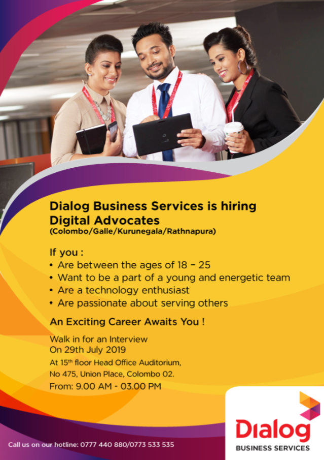 Dialog Business Services is hiring Digital Advocates (Colombo / Galle / Kurunegala / Rathnapura)