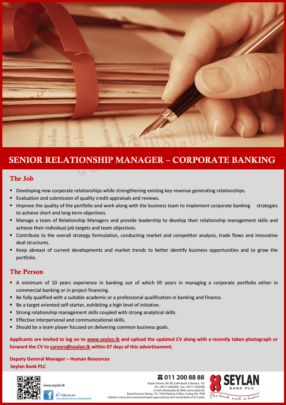 Senior Relationship Manager: Corporate Bank – Seylan Bank