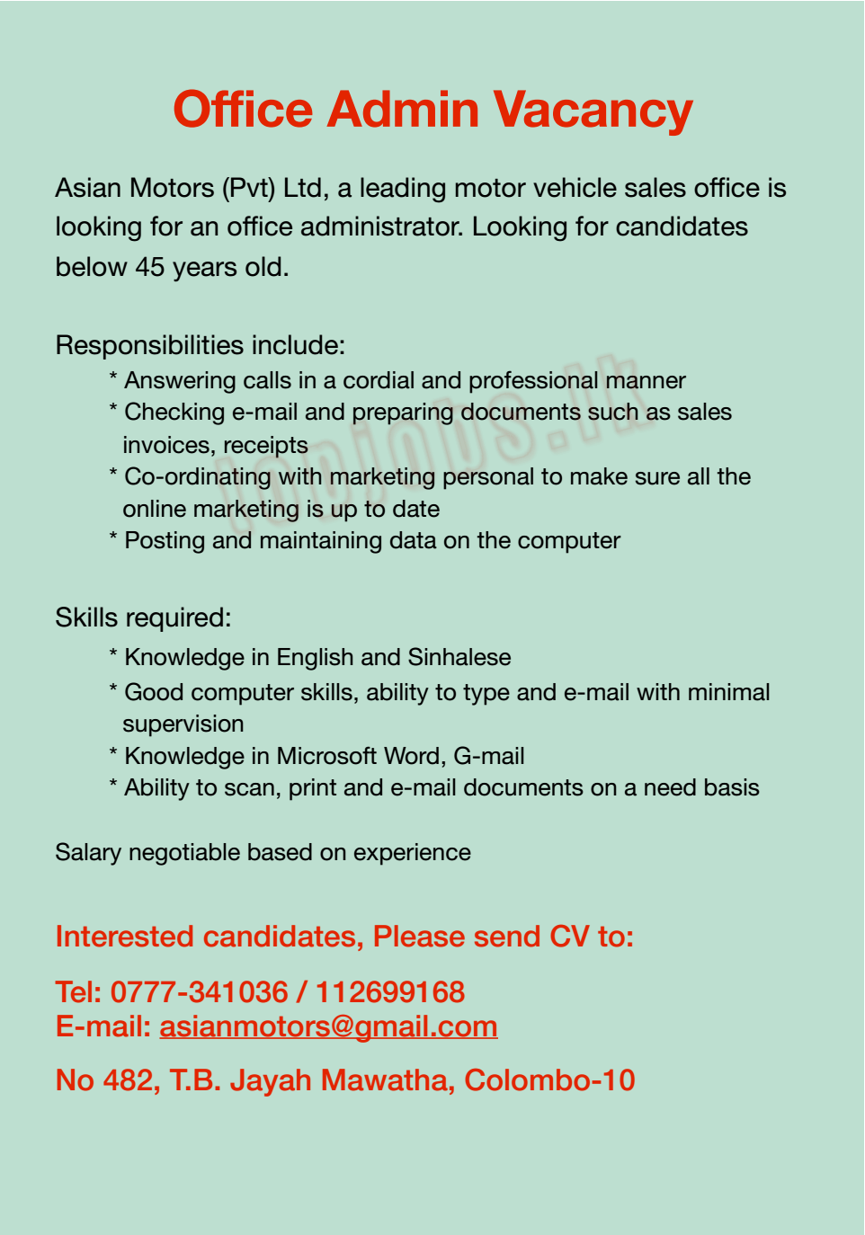 Vacancy In Asian Motors (Pvt) Ltd.