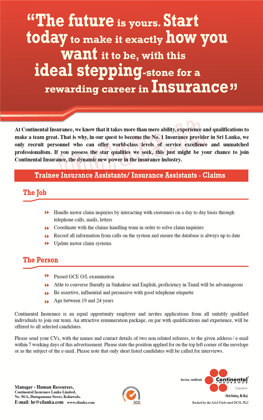 Vacancy In Continental Insurance Lanka Limited