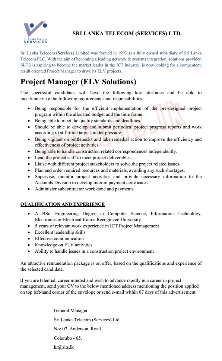 Vacancy In Sri Lanka Telecom (Services) LTD.