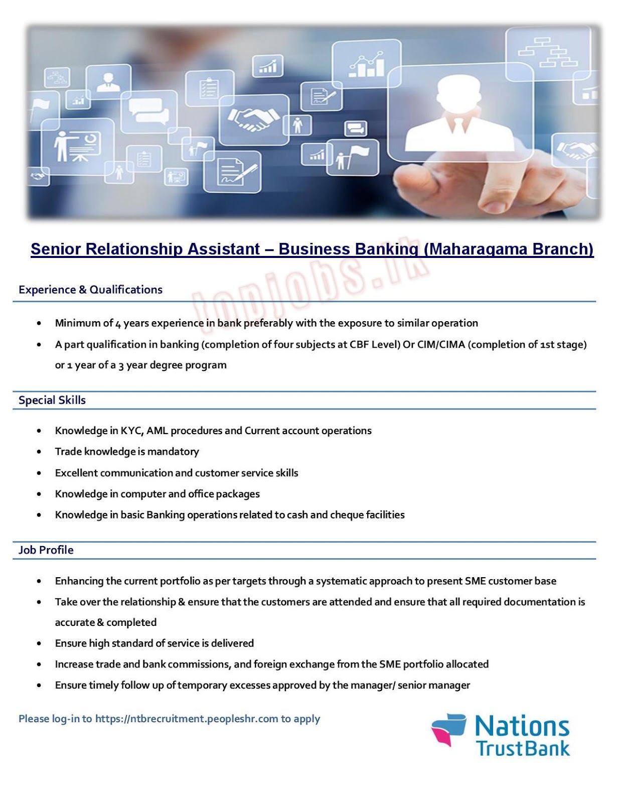Post Of – Senior Relationship Assistant – Business Banking (Maharagama Branch)